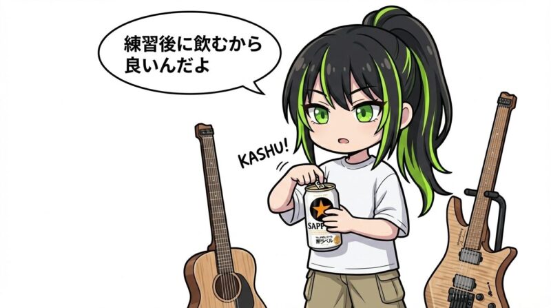 個人差はありますが、少量でもアルコールが入れば小脳の運動制御機能は低下します。「精密な練習」をするならゼロが理想です。ただ、コードをジャカジャカ弾いてストレス発散するだけなら、1本くらいは許容範囲かもしれません(ただし、上達は期待しないでください)。