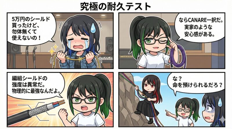 しかもCANAREは被膜(ジャケット)の質もいい。適度な弾力があって、巻き癖がつきにくいんだ。ライブの撤収時に「8の字巻き」が決まりやすいのも、地味だが重要なスペックだぞ。