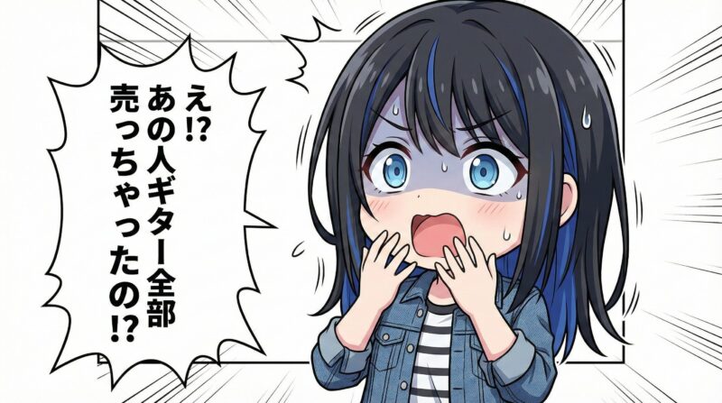 「〇〇さん、結婚してギター全部売っちゃったらしいよ。今は子育てに専念してるんだって。」