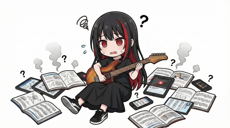 「YouTubeで『初心者講座』を見まくっているのに、全然弾けるようにならない」 「高い教則本を買ったけど、最初のフレーズで挫折して枕元に積まれている」
