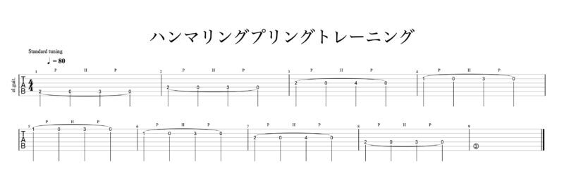 0フレット→2フレットハンマリング→3フレットハンマリング→2フレットプリング