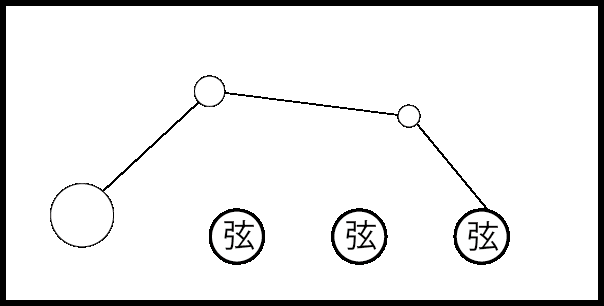 - 弦を引っ掛ける:むしろ指の腹で引っ掻く位の勢いで弾いてみよう。慣れと共に動きは次第にコンパクトになっていく。