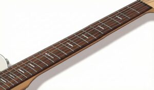 演奏性: ローポジションからハイポジションにかけて指板のカーブが平らになる「コンパウンドラディアス」を採用。テクニカルなソロからコードバッキングまで、ストレスフリーな運指が可能です。