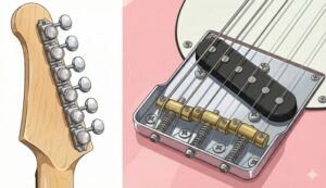 ロック式ペグと「In-Tune」ブラスサドルを採用。テレキャスタイプの弱点だったオクターブピッチの甘さが解消されています。